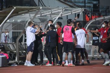 Vladimir Vujovic menjadi penyelamat di akhir. Keributan terjadi tepat setelah wasit meniup peluit panjang laga Bhayangkara FC vs Persib Bandung Sabtu 16102021 di Stadion Moch Soebroto. - Sabtu 16 Oktober 2021 0555 WIB.